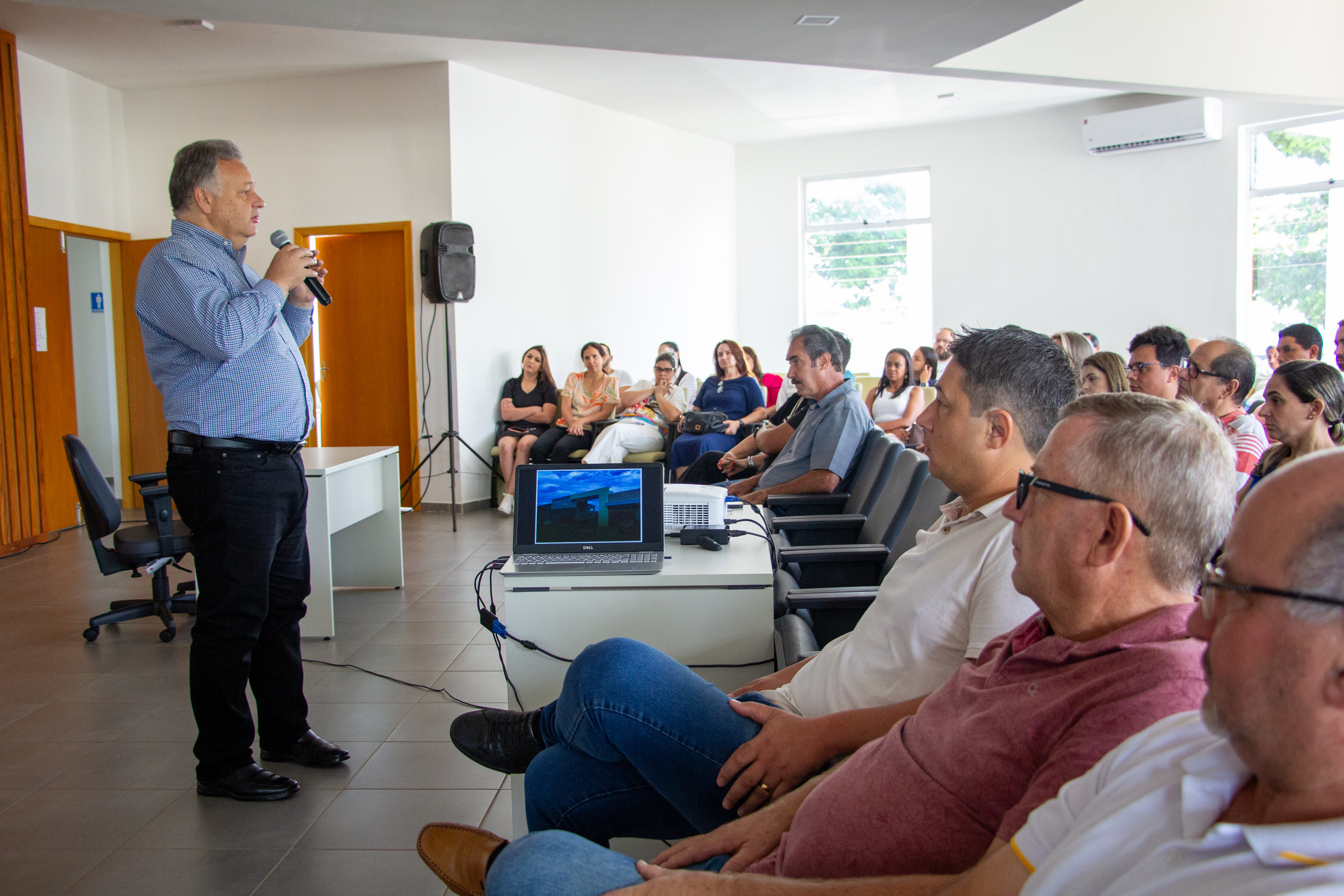 Durante o evento, os servidores municipais tiveram a oportunidade de assistir a uma apresentação detalhada das atividades realizadas pela Secretaria de Viação e Serviços Rurais ao longo do ano de 2023.