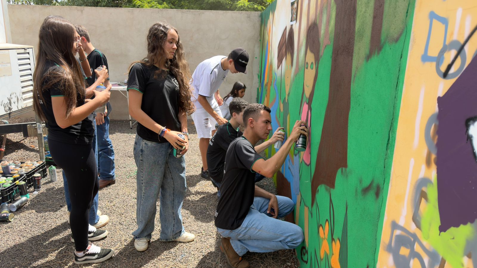 Durante a oficina, os alunos aprenderam técnicas de grafite e participaram da construção do desenho oficial. A iniciativa será ofertada a outros municípios, com o intuito de fortalecer as ações culturais e socioambientais na região.